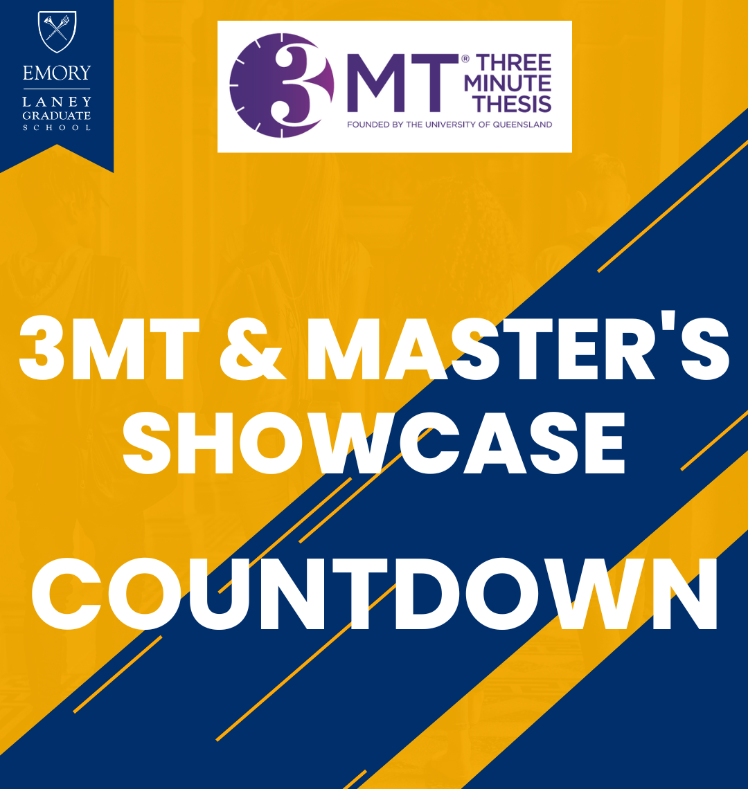 The final day to submit a preliminary application for the Three Minute Thesis (3MT) and Master’s Showcase competition is 12 p.m., Friday, January 30. Laney Graduate School students who have yet to finalize their presentations are encouraged to submit their applications by the noon deadline.